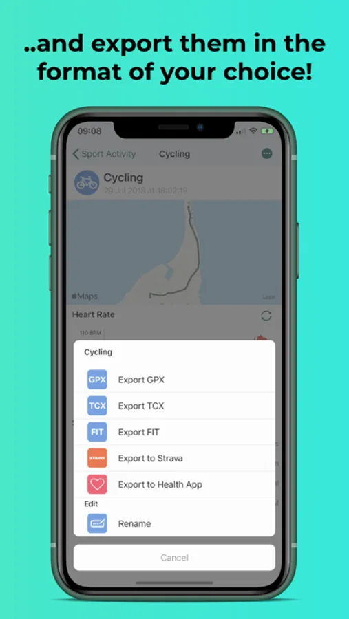 - Detailed stats on your activities with the option of exporting them to Strava** or as a .gpx, .tcx or .fit file.
