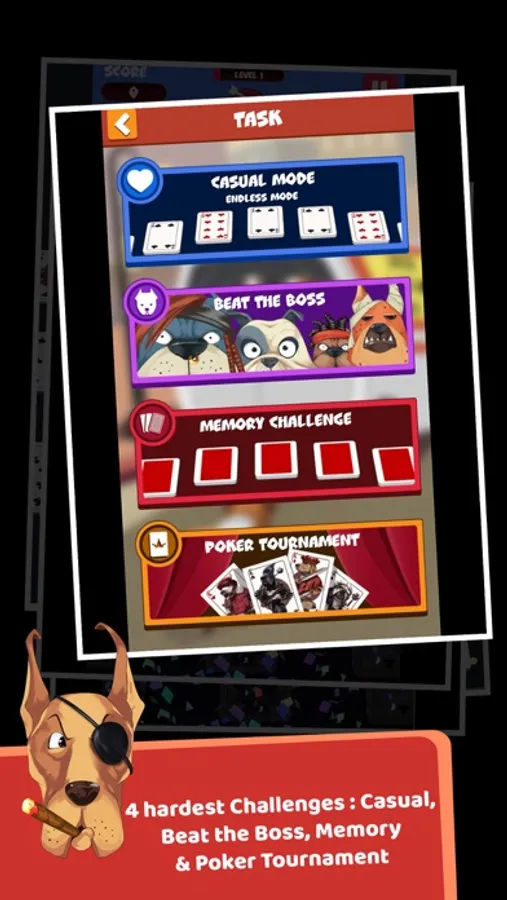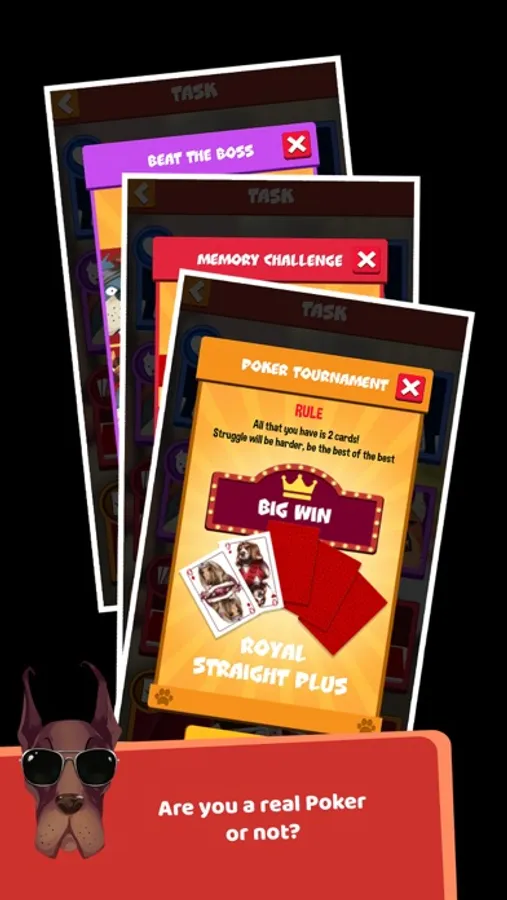 Dogker is the first ever combination between casual game and poker, playing by the full Poker rules.