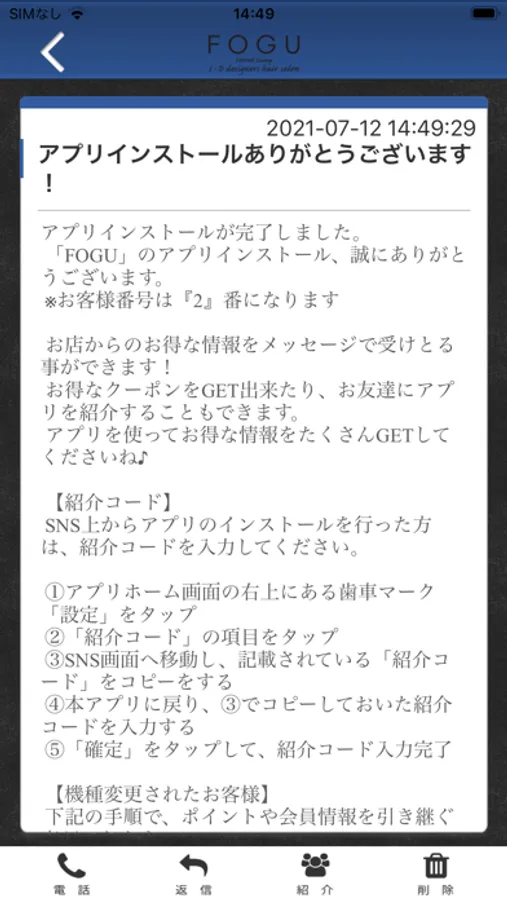 FOGUを通じてお友達に紹介する事ができます。