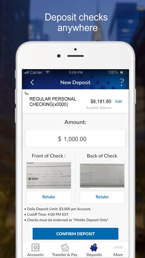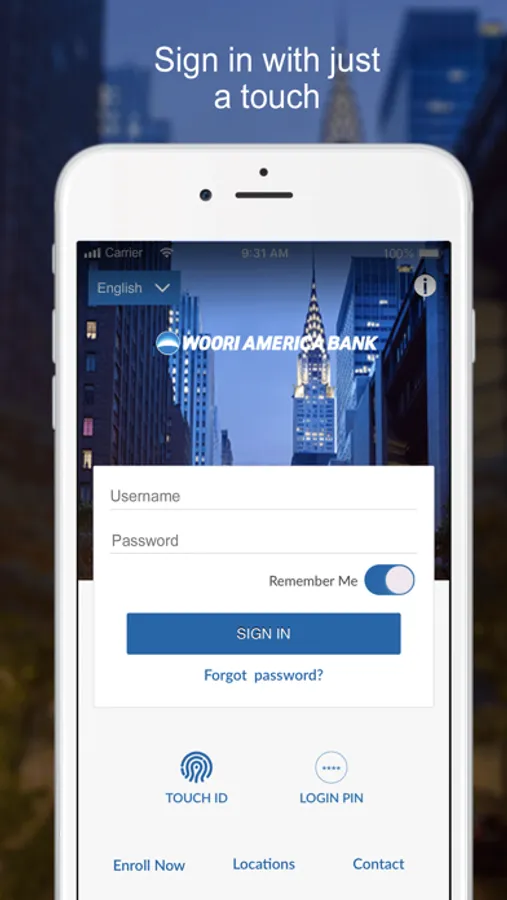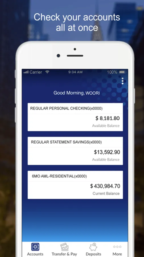 Access your account from anywhere with Woori America Bank Mobile Banking app. Manage your accounts, transfer money, pay bills, deposit checks, all safely and conveniently with your phone.