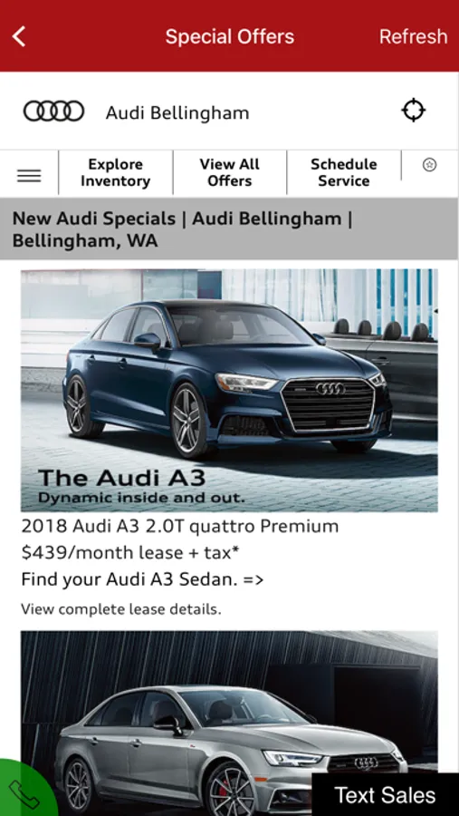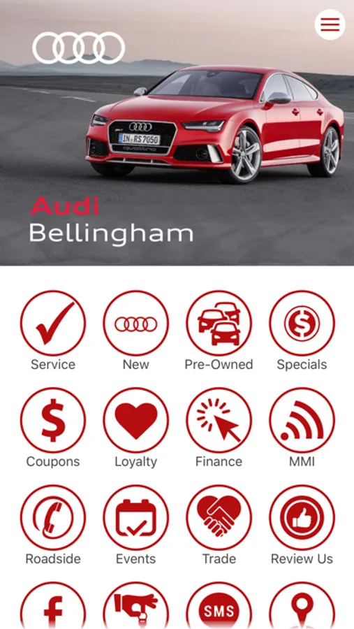 Audi Bellingham dealership loyalty app provides customers with an enhanced user experience. The mobile dealership app provide customers with relevant specials and loyalty offers. Key features include: