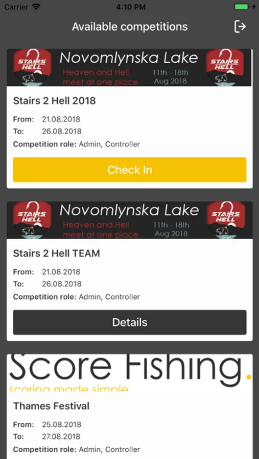 The competitions are set up on the web, and the Score Fishing app submits the scores