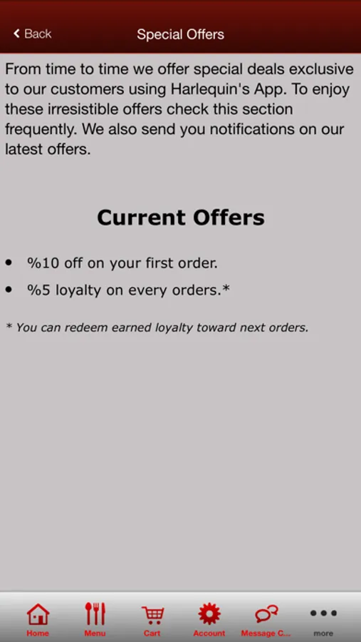 Congratulations! You find our App. Using this App we hope you enjoy a lot of benefits including EXCLUSIVE offers and rewards. We hope you enjoy placing orders through the app when you experience: