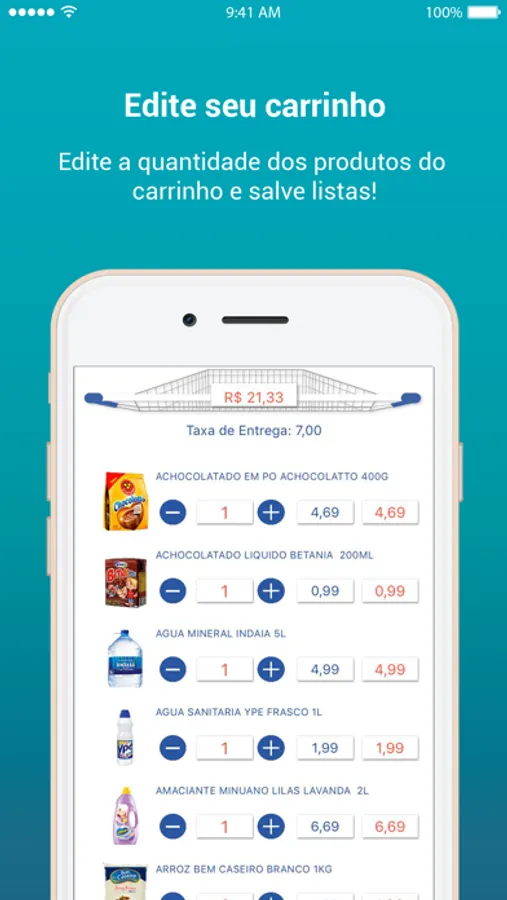 • Adicionar produtos no seu carrinho com um simples tocar e arrastar.