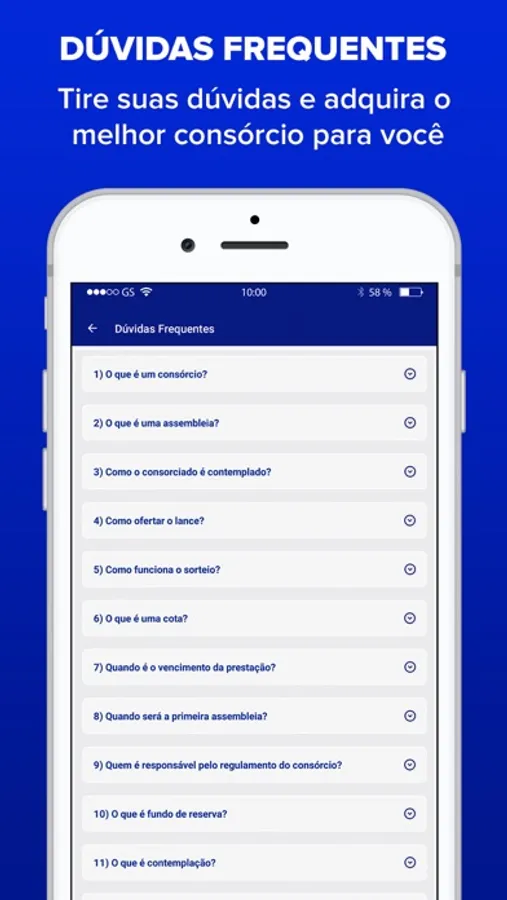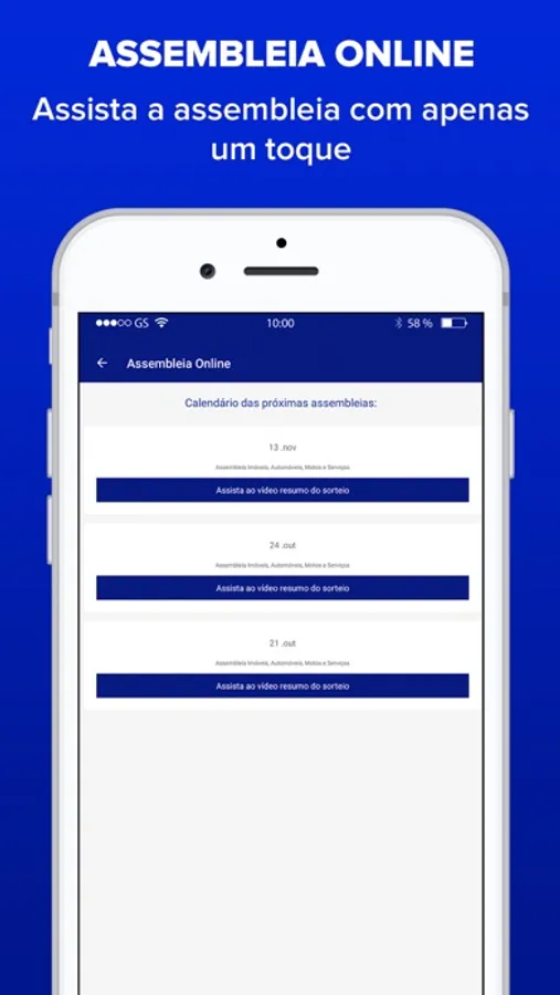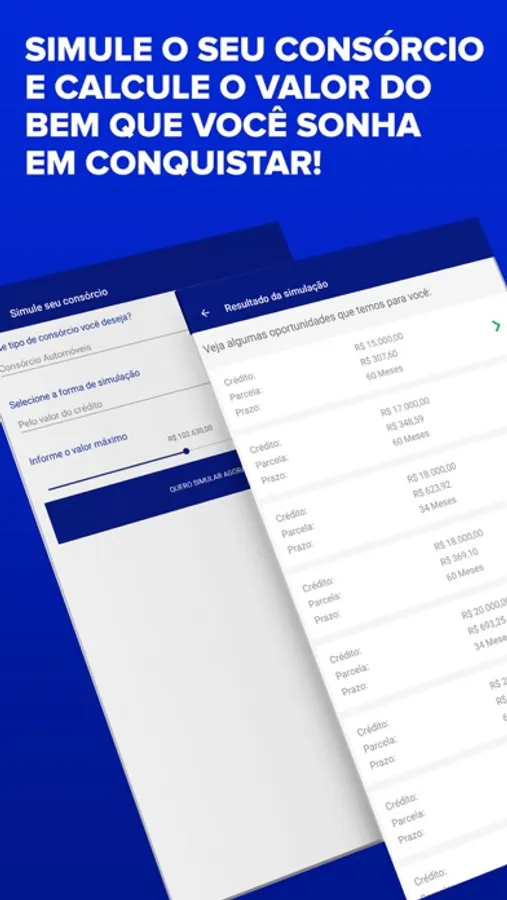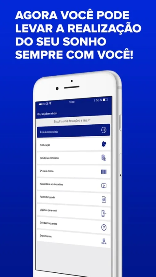 Simule seu consórcio, assista assembleias ou retire boletos com apenas um toque.