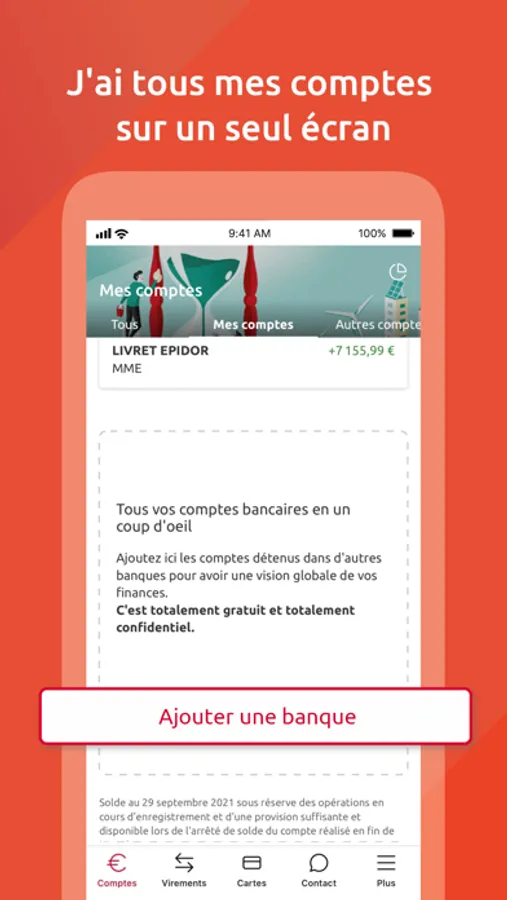 - Visualisez tous vos comptes, même ceux d’autres établissements bancaires sur un seul écran pour avoir une vue d’ensemble de vos finances avec le nouveau service d’agrégation de comptes.