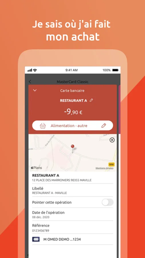 - Contrôlez facilement vos dépenses grâce à la géolocalisation et les intitulés simplifiés de vos transactions.