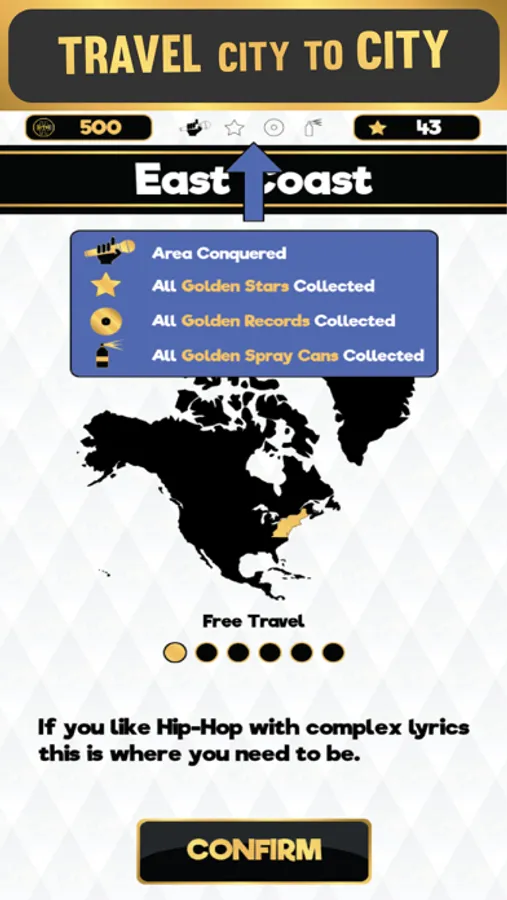 We have more than just levels we have Cities, Countries and Continents to complete. You can travel around the world and get a sneak peek into the Hip Hop Culture around the world.
