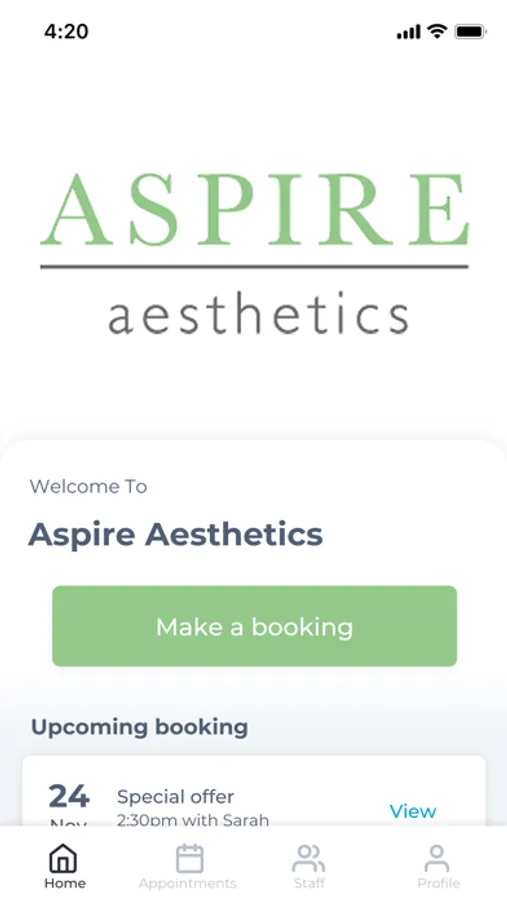 The Aspire Aesthetics app makes booking your appointments and managing your loyalty points even easier. You're just a few taps away from feeling good and looking great!