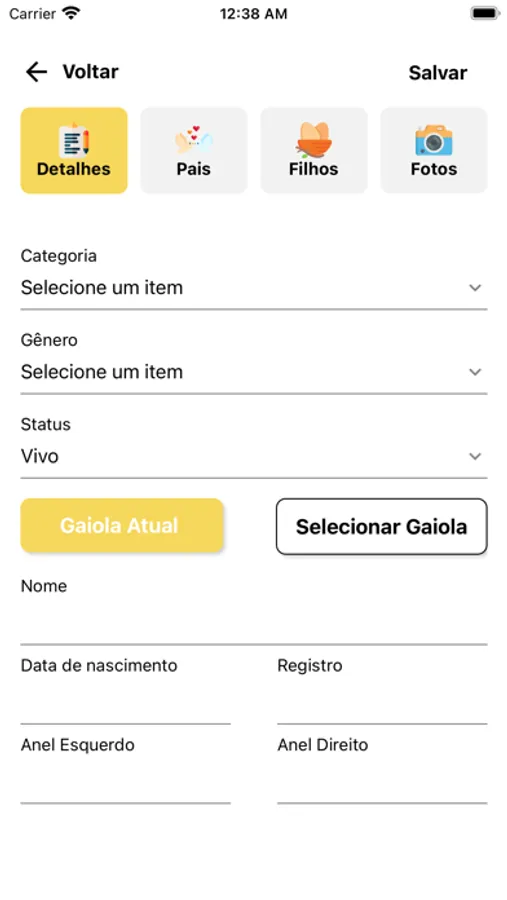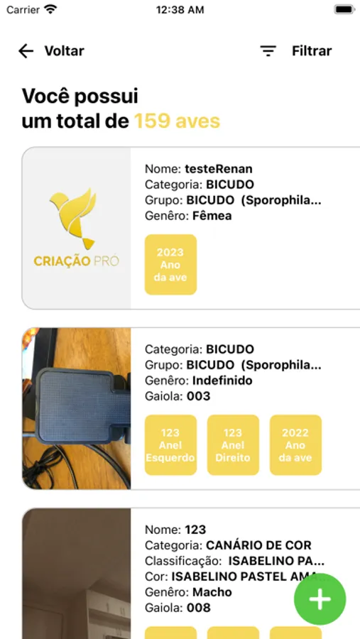 O APP possibilita o cadastramento dos pássaros e suas fotos, alem de possibilitar o cadastro das gaiolas do criador, facilitando assim o manuseio dos ovos e controle de filhotes através das notificações e alertas gerados.