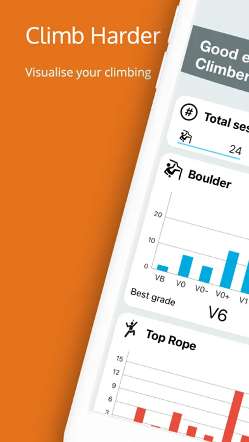 Climber Diary is here to help you to climb even harder! Track your sessions and training, visualize your climbing progress and identify those points that will make you climb the next level!