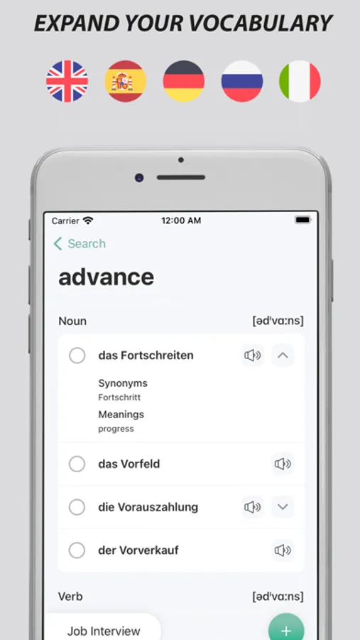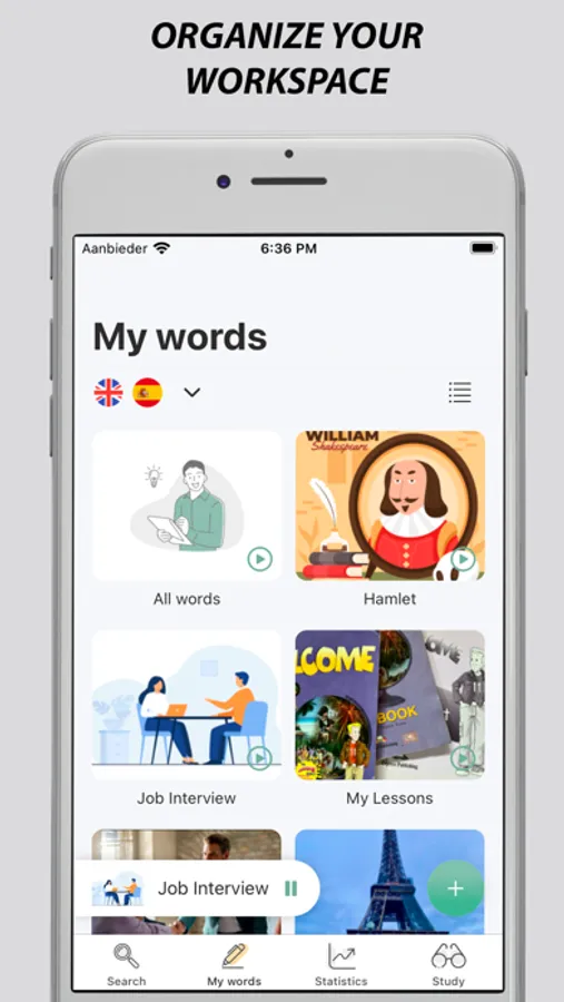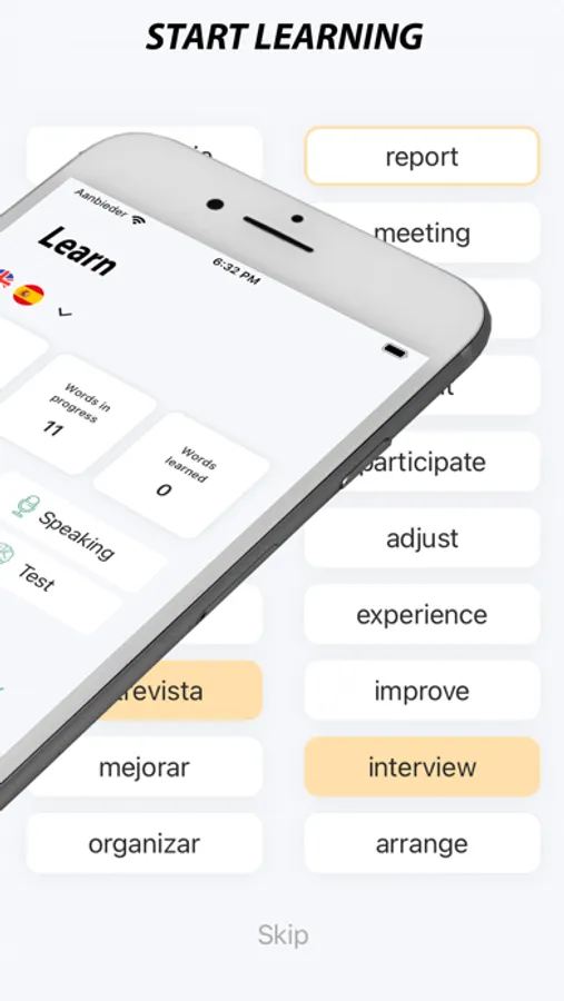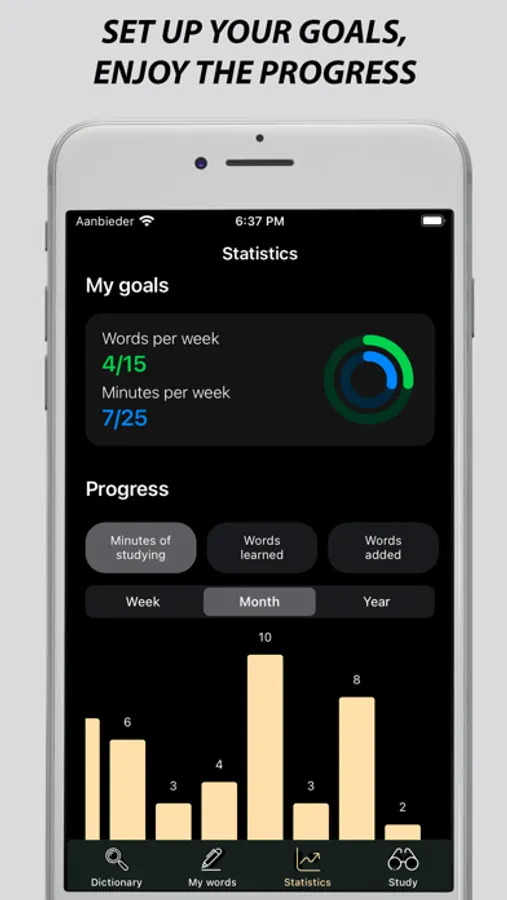 Increase your vocabulary, set personal goals and track progress by checking your English vocabulary level and other available charts.