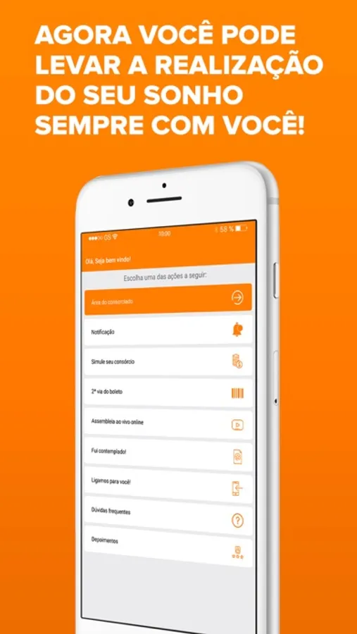 Simule seu consórcio, assista assembleias ou retire boletos com apenas um toque.