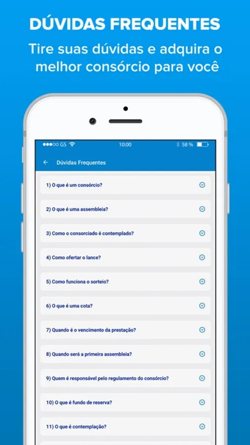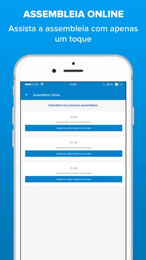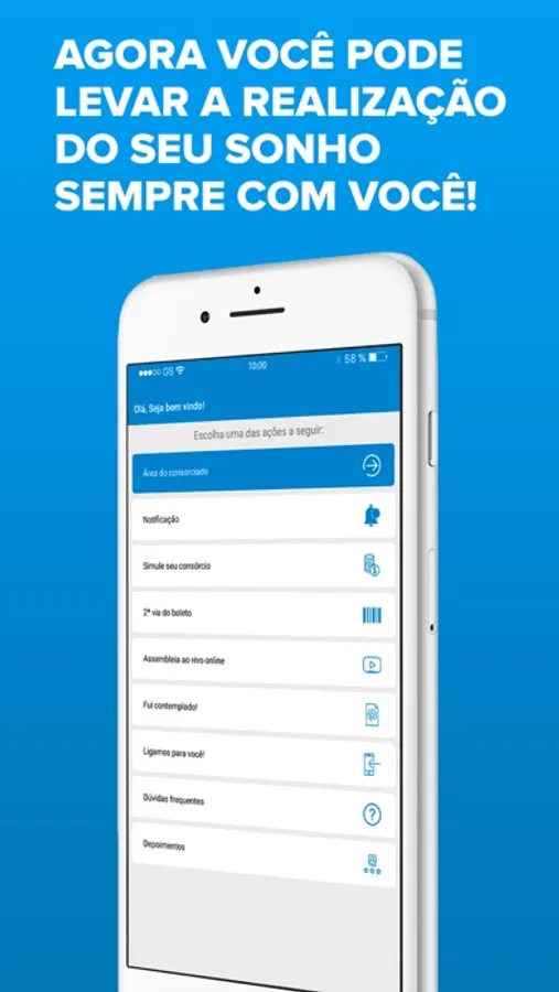 Simule seu consórcio, assista assembleias ou retire boletos com apenas um toque.