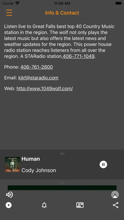 Listen live to Great Falls best top 40 Country Music station in the region. The wolf not only plays the latest music but also offers the latest news and weather updates for the region. This power house radio station reaches listeners from all over the region. A STARadio station,406-771-1049.