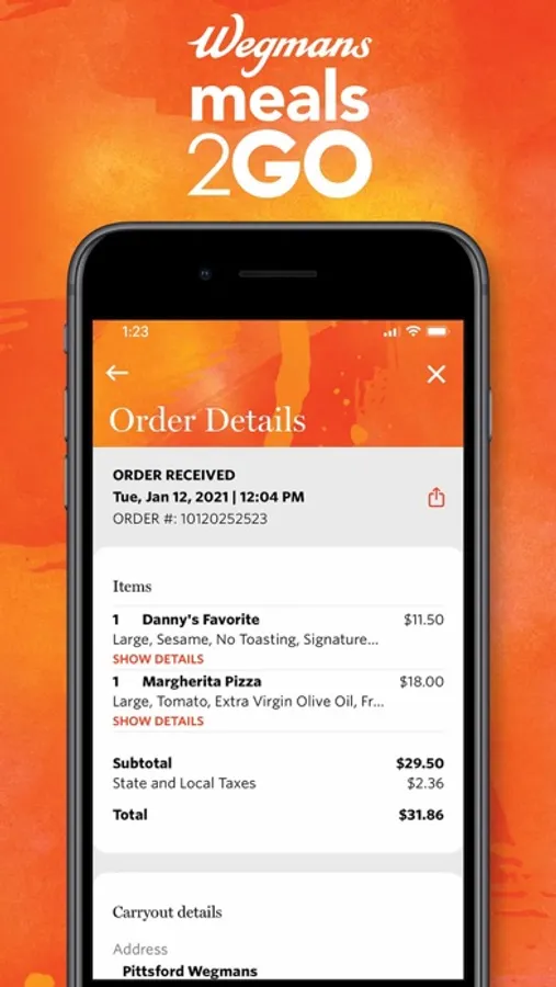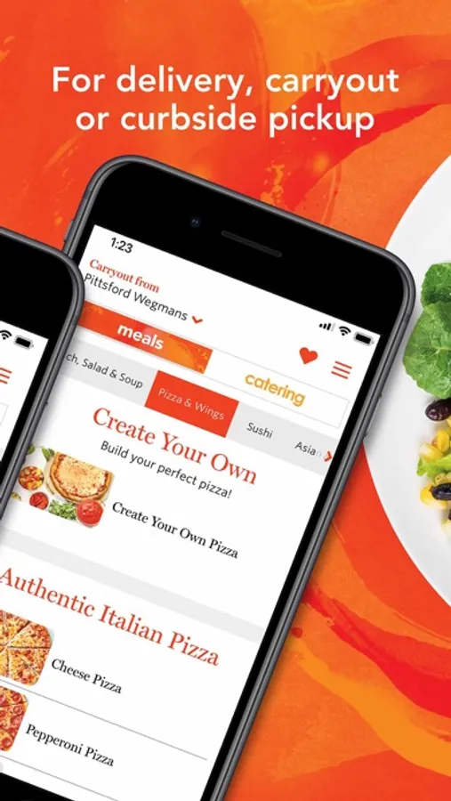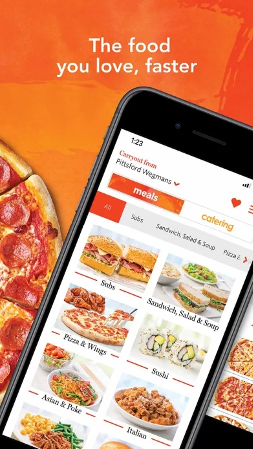 Order delicious, freshly prepared meals for delivery, carryout or curbside pickup. Choose your favorite restaurant foods like pizza, subs, sushi, soups, salads, mac & cheese, desserts, and more! Catering favorites are also available to make entertaining easy. Order beautifully prepared party platters, ready-to-heat entrées, sub and sandwich trays, and more with Wegmans Catering 2GO. Meals and catering can be ordered ahead for takeout. Customize your favorite foods, pay, and redeem digital coupons right in the app!