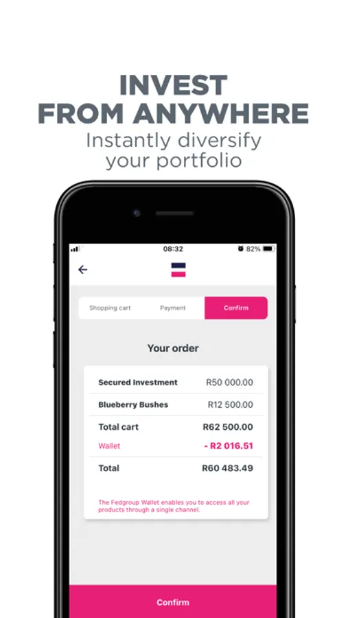 Download the Fedgroup App now and put your financial future in the palm of your hand. Whether you are purchasing an Impact Farming asset or investing in a Secured Investment to balance your portfolio, we have created a holistic platform to help you make better decisions with your money.