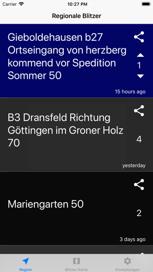 - Voting-System für die mobilen Blitzer: Du hast den Blitzer auch gesehen? Dann vote ihn hoch.