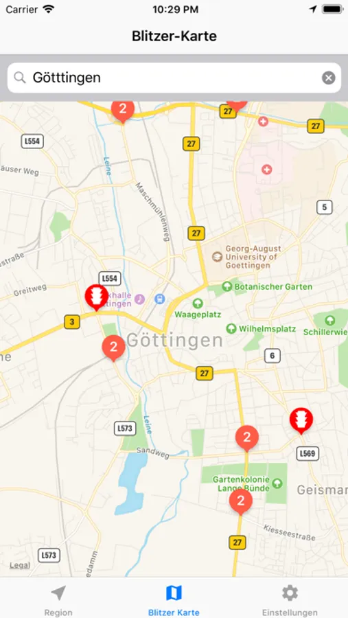 - Übersichtsseite mit allen aktuellen Blitzern