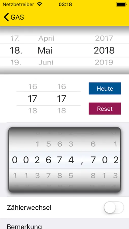 Sie können Ihren Zählerstand per Mail an Ihren Provider senden, wenn Sie die dazu gehörigen Daten gleich mit eingeben.