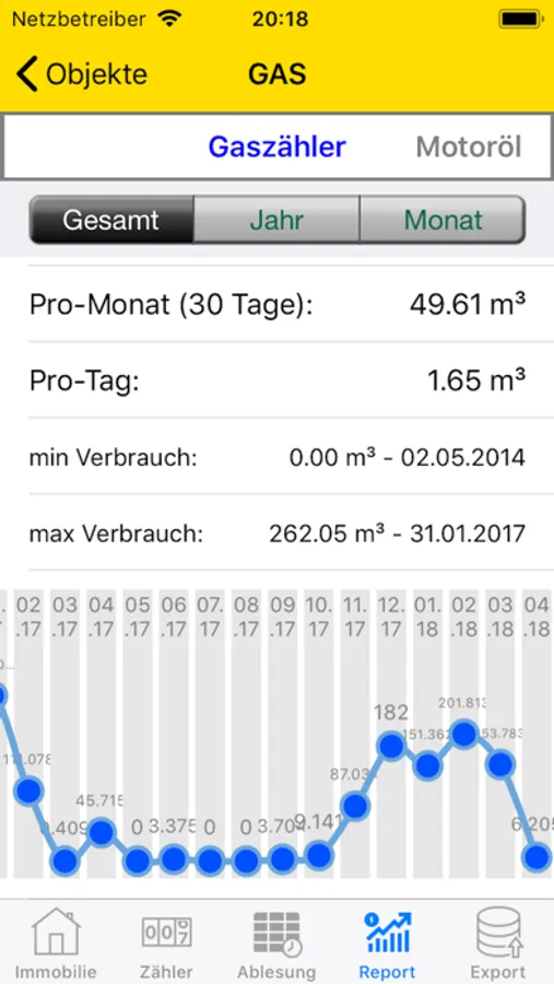 - Auswertung / Statistiken für Gesamt - Jahr - Monat und Kalkulation für Tag und Monat