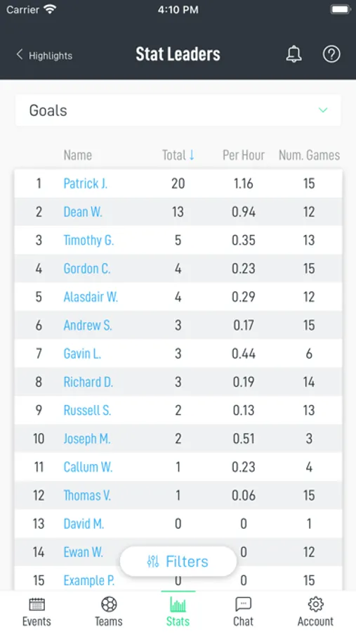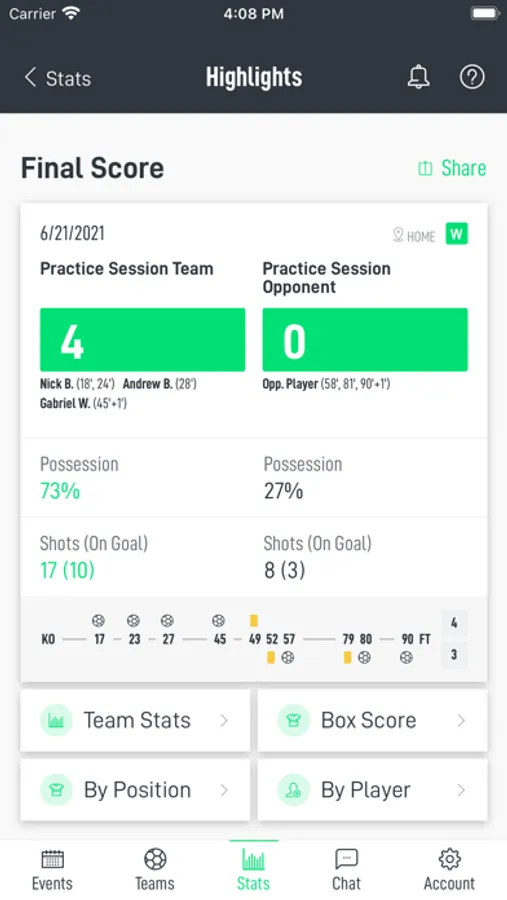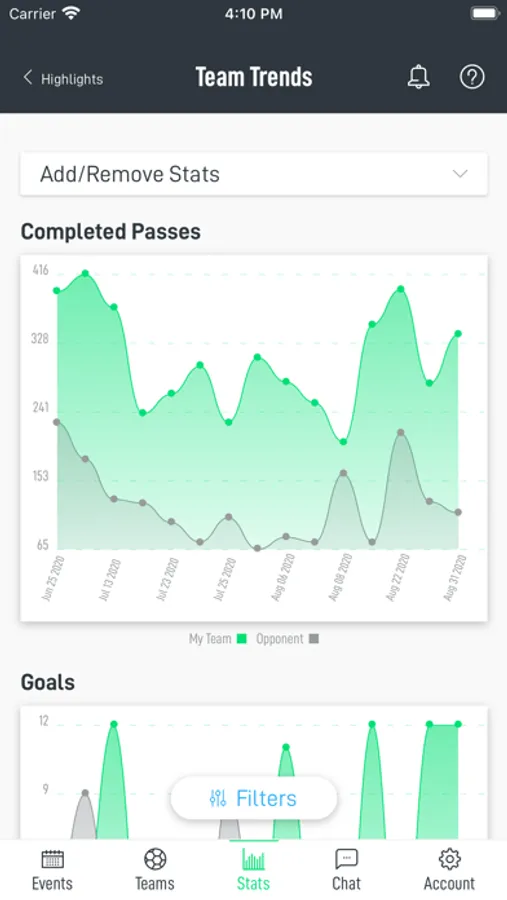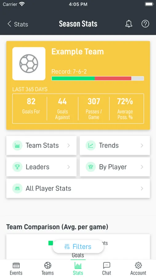 * Team stats help you understand how your team is performing against your opponent and over time.