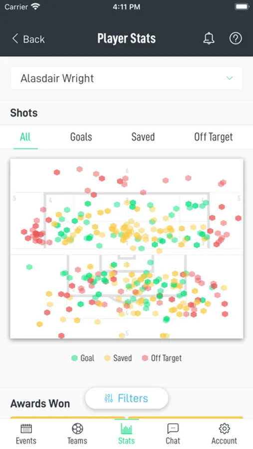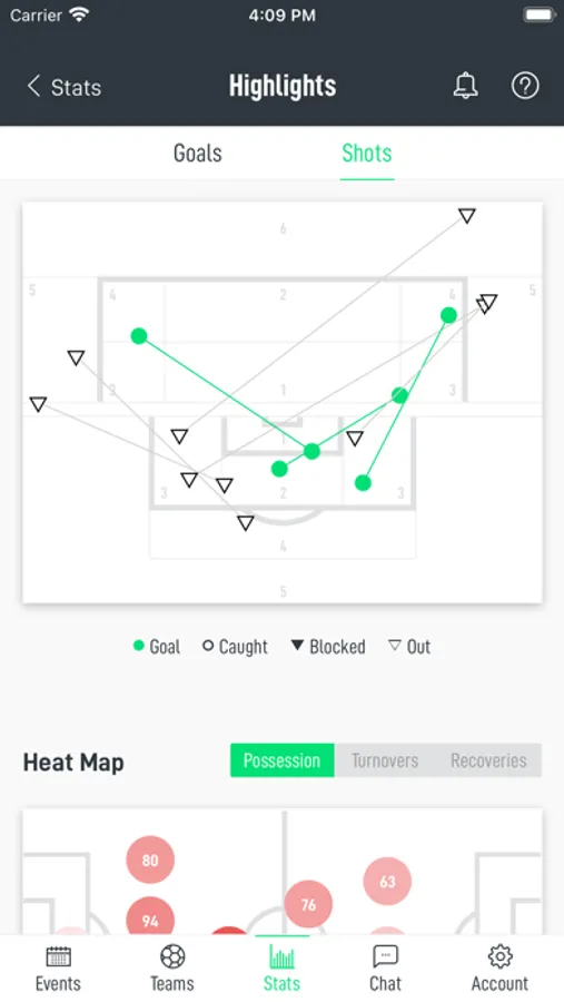 * A simple interface lets anyone capture important statistics like possession %, passes, turnovers, recoveries, and even where each shot was placed.