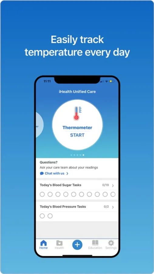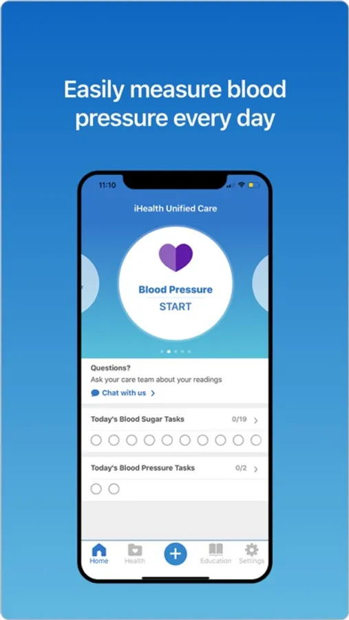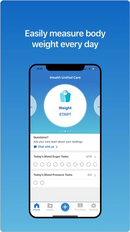 The iHealth Unified Care platform empowers patients with chronic diseases including Diabetes, Hypertension, obesity etc. to better manage their health and get real-time feedback from their primary care physician and professional care team members. iHealth Unified Care mobile app provides patients with a customized care plan, real-time chatting capabilities with care team members, Health app integration for Steps tracking and bluetooth connected devices such as iHealth Align blood glucose monitor and iHealth BP3L blood pressure monitor for vitals self tracking and sharing data with physicians and care teams in real time.