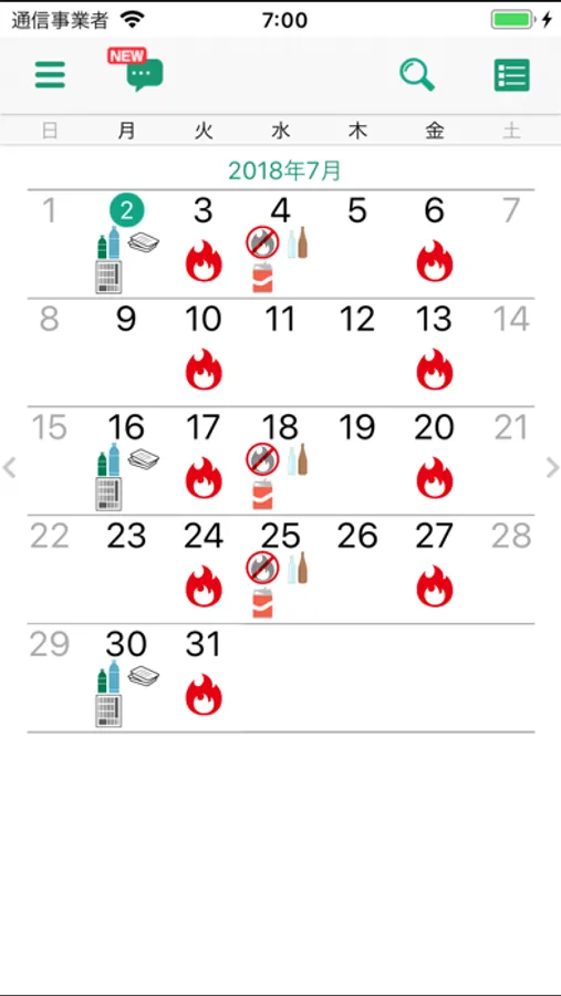 今日と明日、週ごと、月ごとの3パターンによるごみ収集日程を一つの画面ですぐに確認することができます。