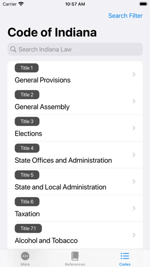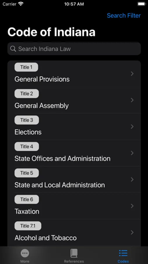 Convenience is crucial. Whether a law enforcement officer or a professional in the field of law, we have simplified the Indiana state statutes for easy use. We not only made the process of navigating through these laws more intuitive, but have added more functionality to enhance your interaction with said laws. Currently, all codes are alphanumeric searchable, which can be further adjusted via filtering to fit your searching needs. Other conveniences have been added in various ways, such as offering common warnings and bookmarking functionalities. All state statutes can be fully accessed offline.