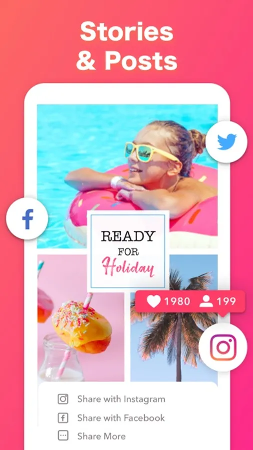 You can showcase your brand with thousands of professional designs in one tap, besides, there are amount of eye-popping templates for Instagram story, Facebook post, Banner, Logo for you to express your personalities. All your designs can be customized, you can change the colors and captions, photos, graphics and fonts every time.