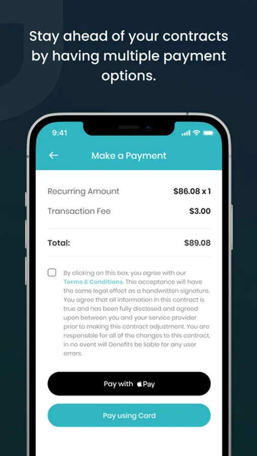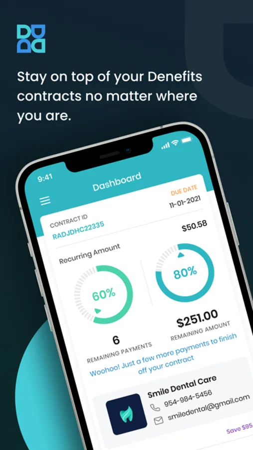 Denefits offers a simple platform that allows you to spread your expenses over months or years and pay the cost in easy & affordable monthly payments.