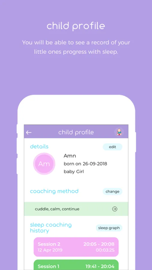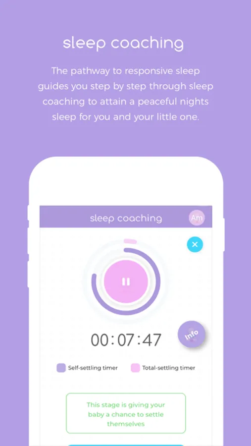 It is a responsive sleep coaching app, an interactive, detailed step by step guide, which gives you real time help, responsive to your babies’ reaction to sleep coaching. Helping little ones learn how to settle themselves independently to sleep without the need to feed be rocked or a dummy replaced every time it falls out. So that when they wake in the night or early from a nap they are able to go back to sleep themselves.