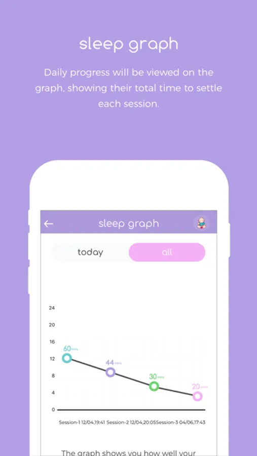 A personalised graph showing your baby’s sleep progress by day.
