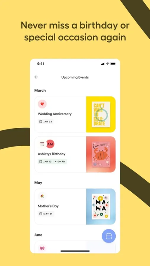 add a Reminder and never miss a birthday, holiday, or special occasion again