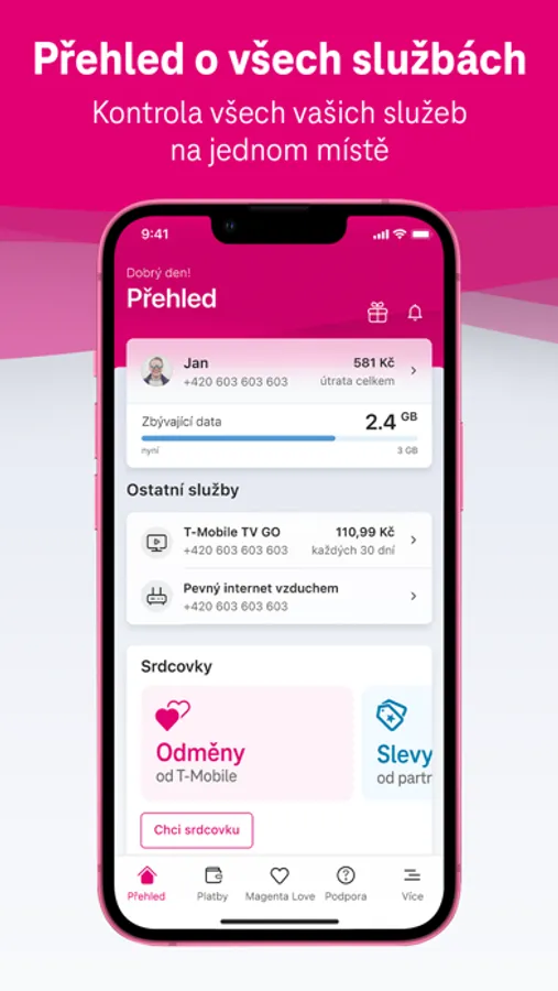 - All of your services in Magenta 1 are put together in the app overview and you can easily distribute shared data between numbers in Magenta 1.