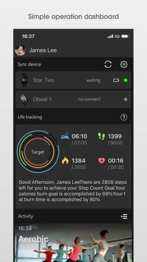 •Personalized health goals, such as cadence, sleep, calories- burn time.