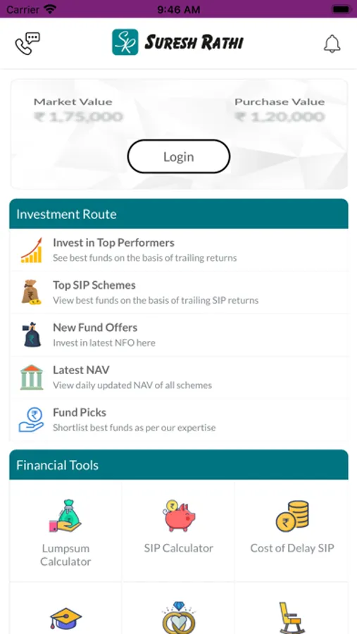Suresh Rathi MF is one-stop shopping for all your Wealth Management needs. You can use this state of the art app to stay on top of your Complete Financial Portfolio with all assets: