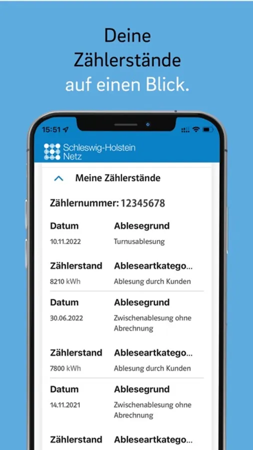 Hier können Sie alle Zählerstände einsehen, die von uns im Abrechnungssystem erfasst wurden.
