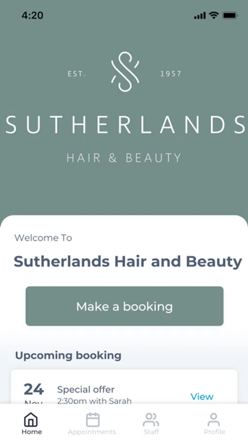 The Sutherlands Hair and Beauty app makes booking your appointments and managing your loyalty points even easier. You're just a few taps away from feeling good and looking great!