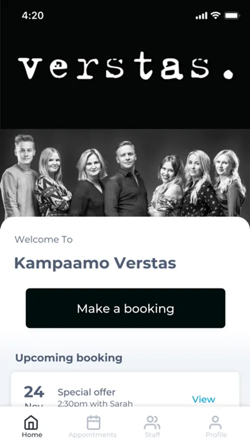 The Kampaamo Verstas app makes booking your appointments and managing your loyalty points even easier. You're just a few taps away from feeling good and looking great!