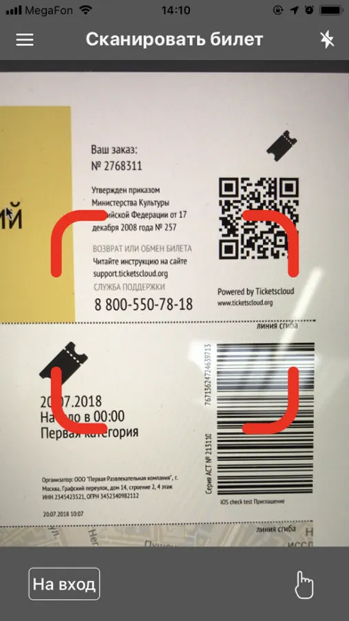 Приложение сканирует QR и штрих коды, размещенные на билете посетителя и выявляет его статус.