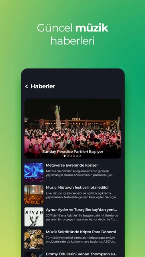 Müzik zevkinize uygun şarkıları dinleyebileceğiniz müzik tarzı odaklı içerikler, en çok sevdiğiniz sanatçıların en özel şarkıları ile oluşturulmuş sanatçı bazlı içerikler ve günlük yaşantınızdaki aktiviteleriniz esnasında size eşlik etmek için tasarlan özel içerikler ile vazgeçilmez bir yol arkadaşı.