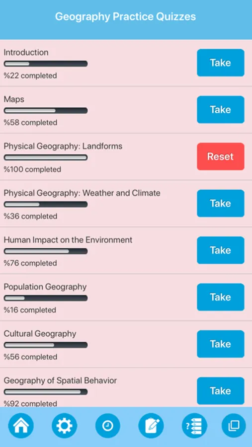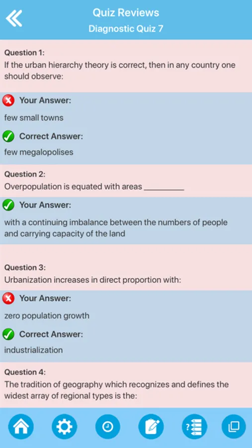 Get educational geography practice and diagnostic exams, view answer explanations, using an intuitive and cool quiz interface.