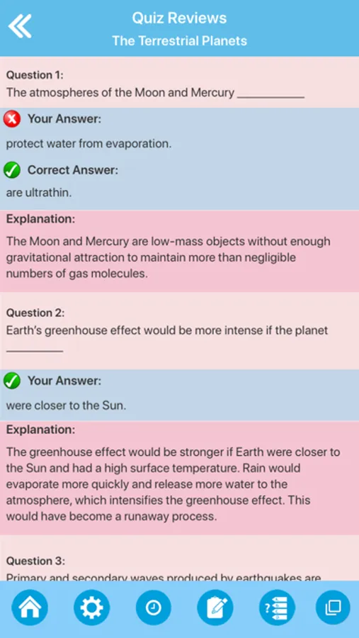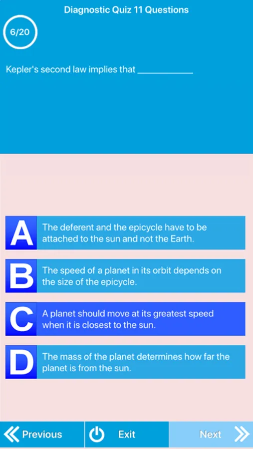 Get educational astronomy practice and diagnostic exams, view answer explanations, using an intuitive and cool quiz interface.