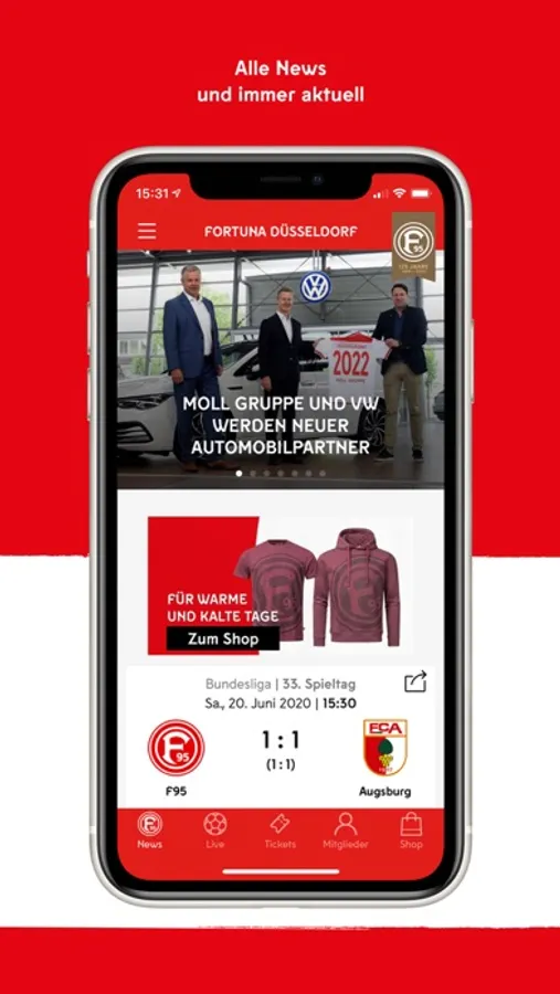 Holt Euch jetzt die offizielle App von Fortuna Düsseldorf! Immer topinformiert, immer am Ball und mit exklusivem Mitgliederbereich. Die neuesten Nachrichten, Live-Ticker zu allen Spielen, Audio-Stream direkt aus der Arena und vieles mehr, ab sofort immer griffbereit in Eurer Hand!
