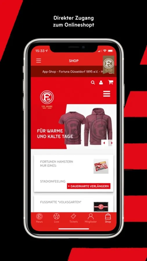 - Einbindung unsere Onlineshops, um noch schneller und einfacher Tickets für die Bundesliga kaufen zu können oder sich die neuesten Merchandise-Artikel anzuschauen