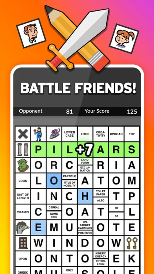 You receive five letters each turn, then strive to place the letters in the crossword within a minute. There are several ways of outscoring your opponent, including a significant bonuses for completing words, for getting key letters right or for using all your five letters within a round.