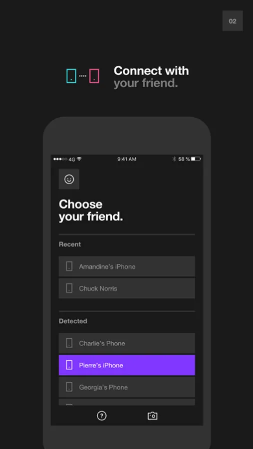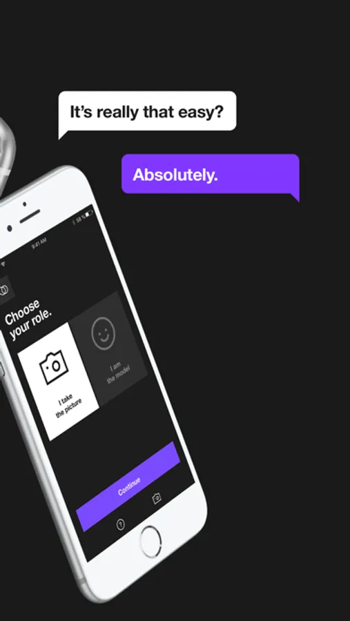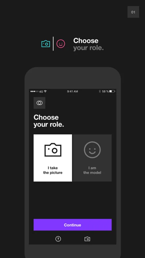 - Open the application with a friend and define your role (photographer or model) to share your screens
