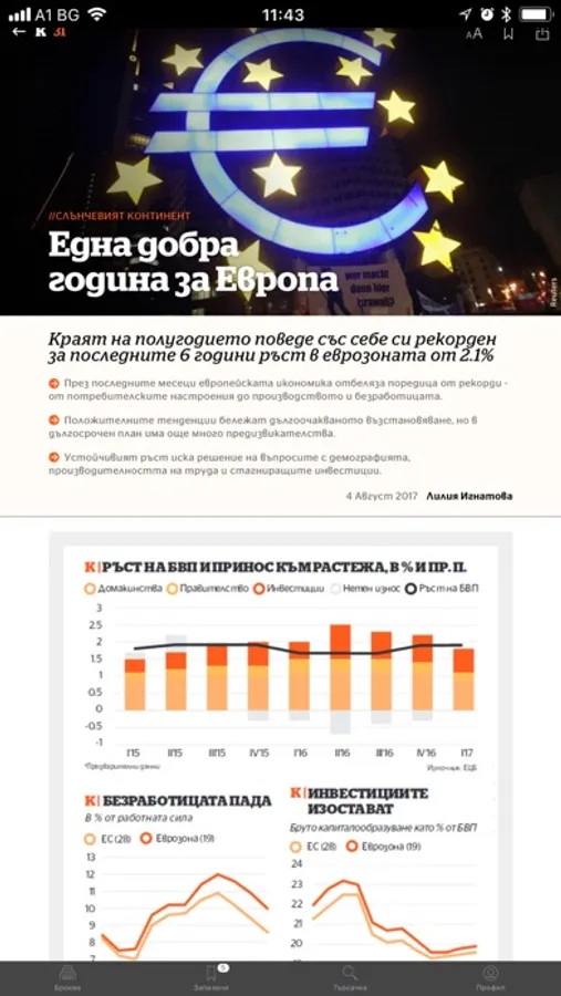 Четете и прелиствате отделните статии в рамките на броя, подредени в логиката на рубриките му. Лесно намирате теми от архива. Имате възможност да запазвате и четете статии и броеве offline.